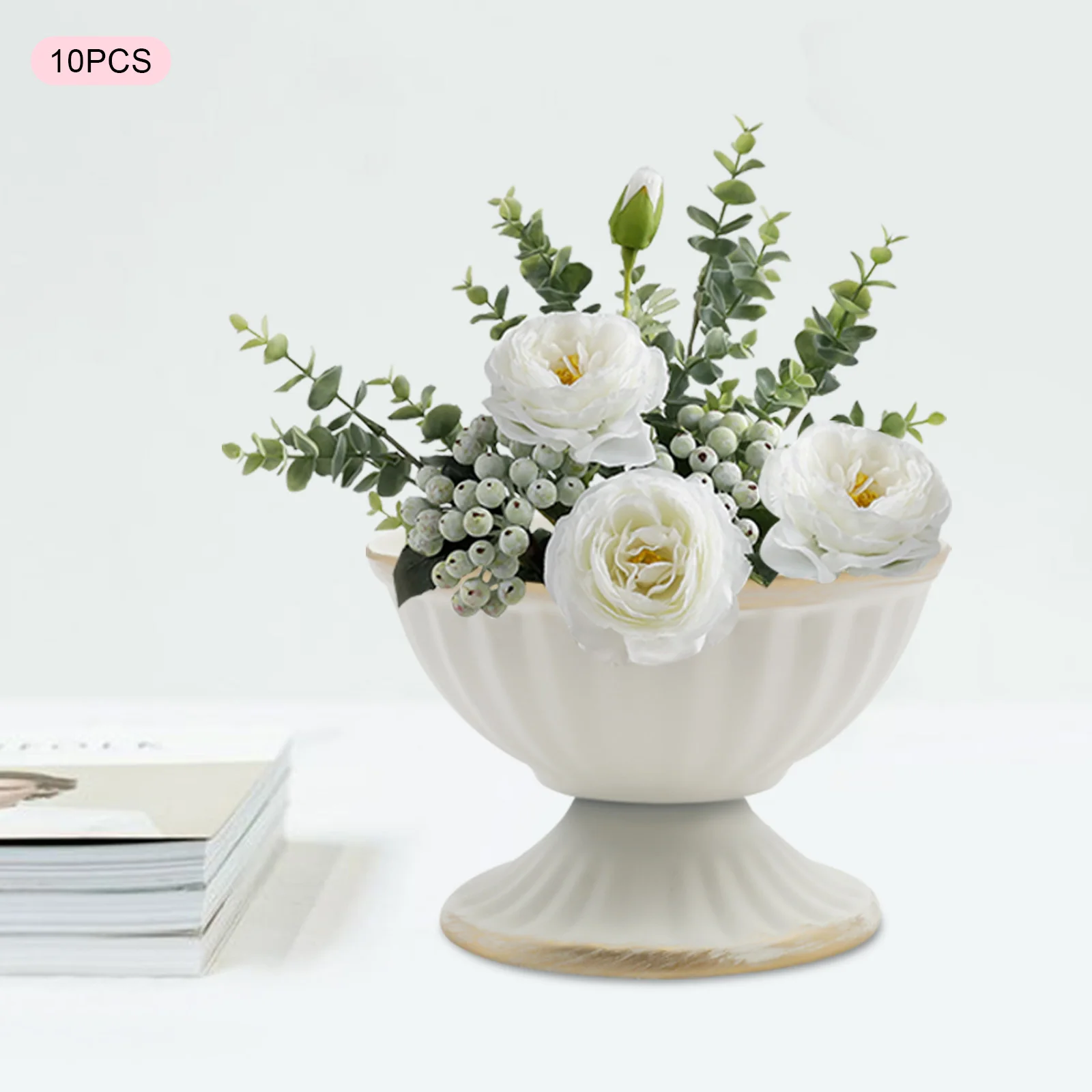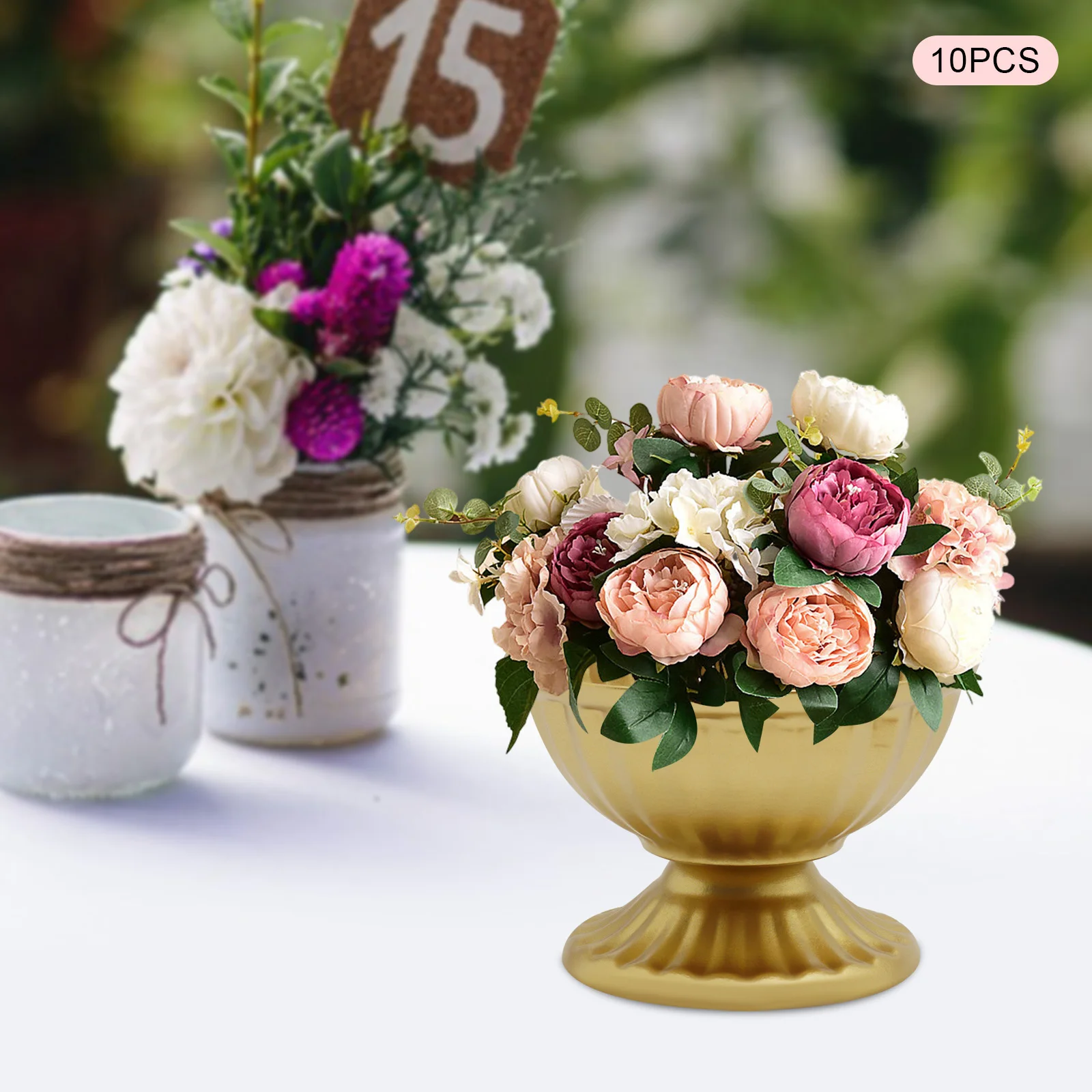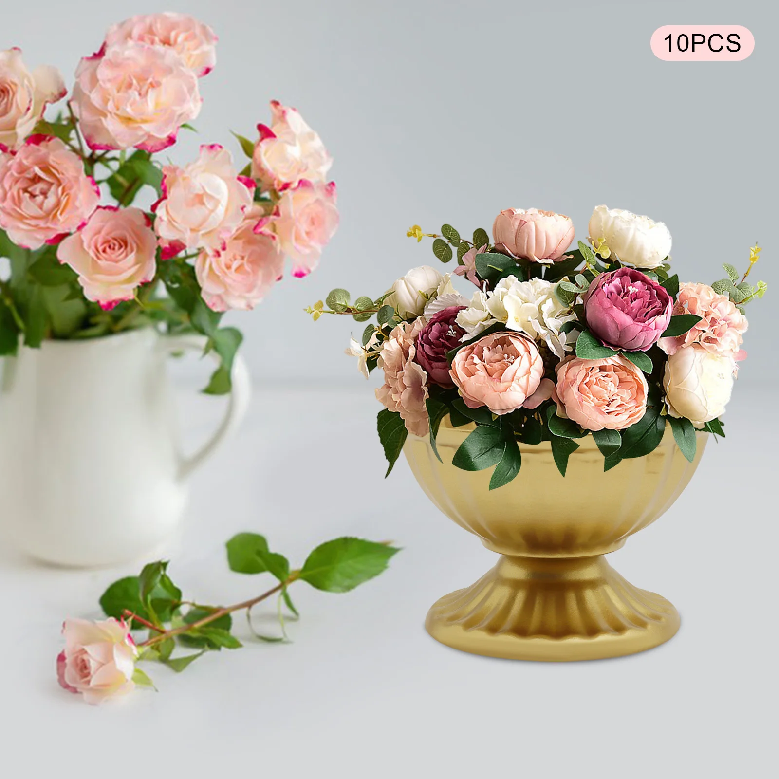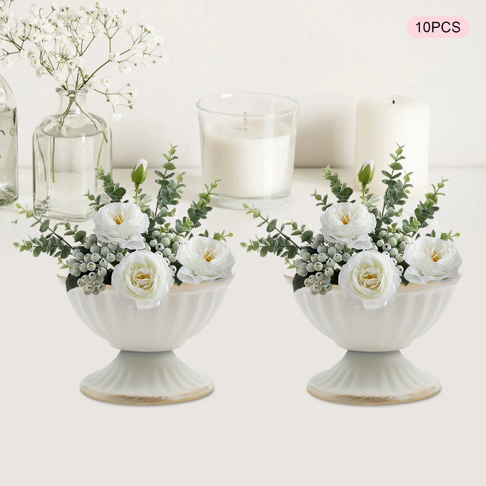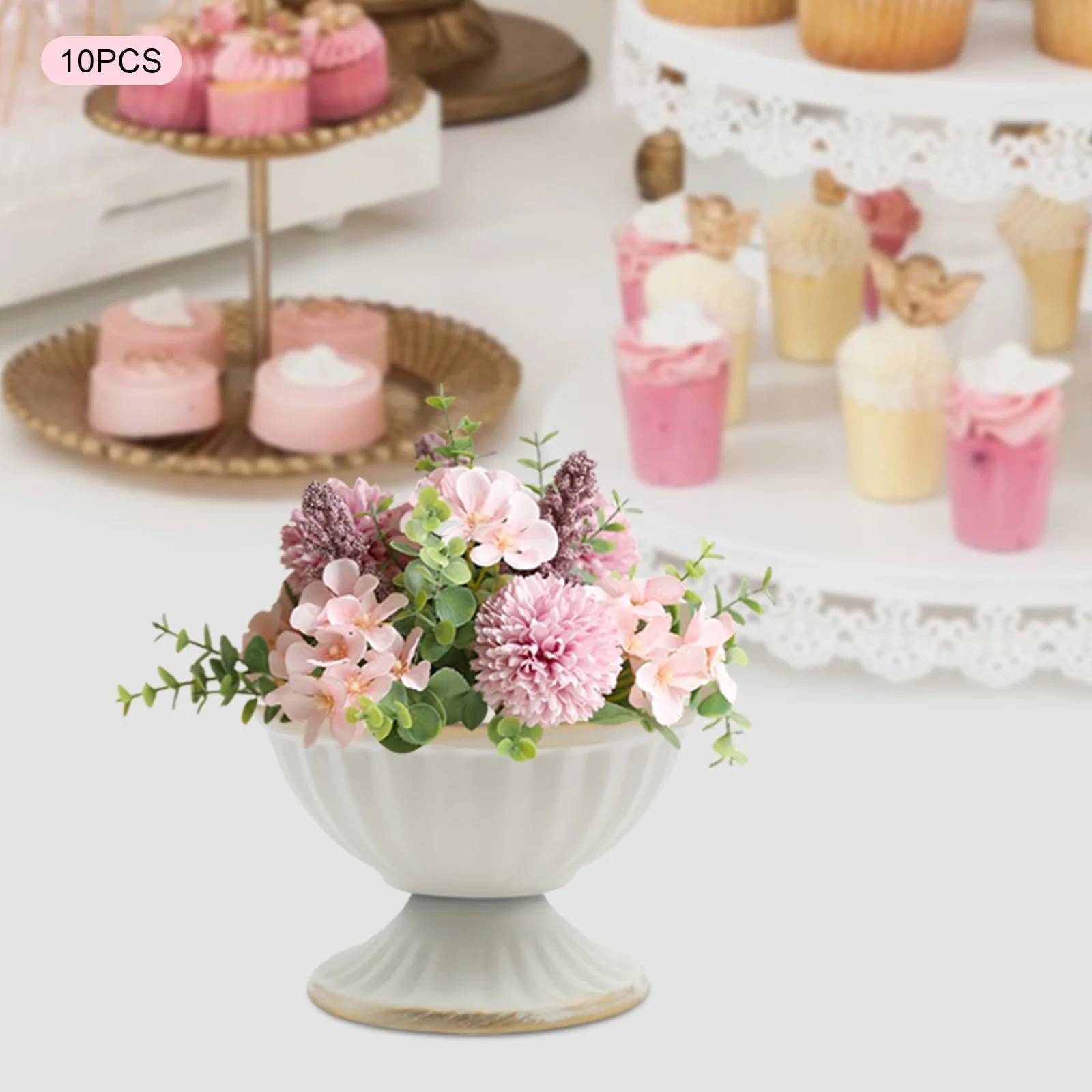10 PCS Metal Vase White/Bright Golden Iron Vase Flower Pot Flower Arrangement Container Home Vessel Ornament Wedding Flower Vase
