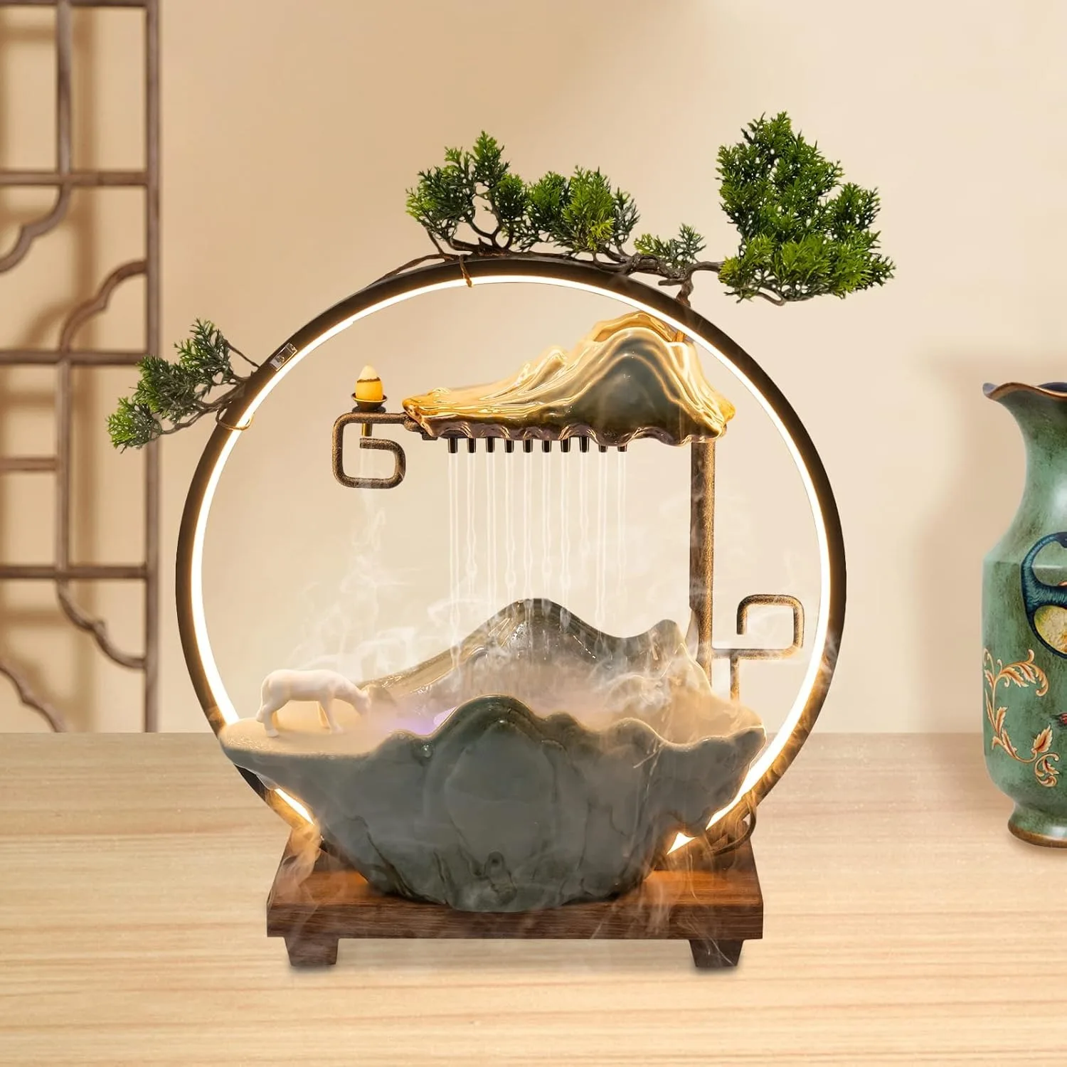 Create a peaceful atmosphere with the gentle flow of water, soft light, and mist that brings balance and calm to any space.